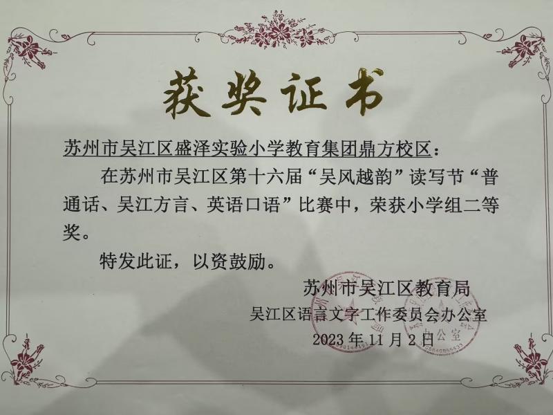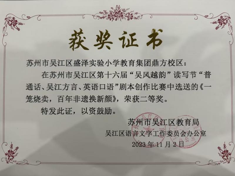 祝贺我校作品在吴江区第六届“吴风越韵”三话比赛中荣获剧本创作二等奖、三话比赛二等奖,感谢辅导老师韩亚萍、丁昱、黄佳雯认真积极辅导!