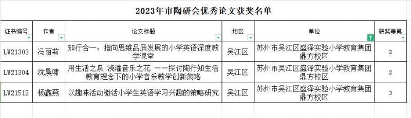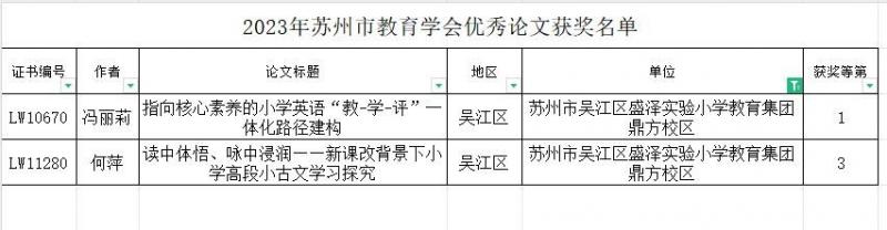 喜讯(2023年苏州市教育学会、陶行知研究会优秀论文获奖名单)
