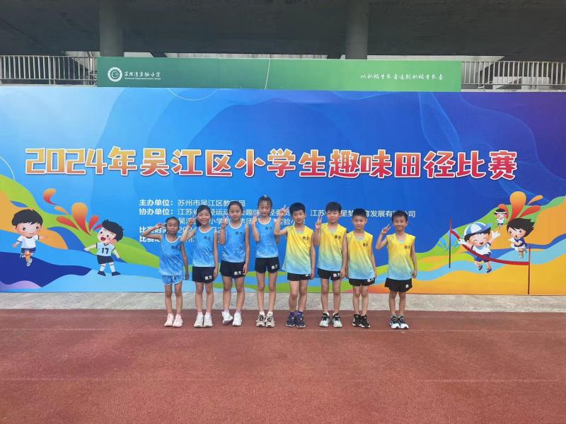 5月25日,2024年吴江区小学生趣味田径比赛在苏州湾实验小学隆重举行,盛泽实验小学教育集团鼎方校区的八位学生代表学校参加了比赛。