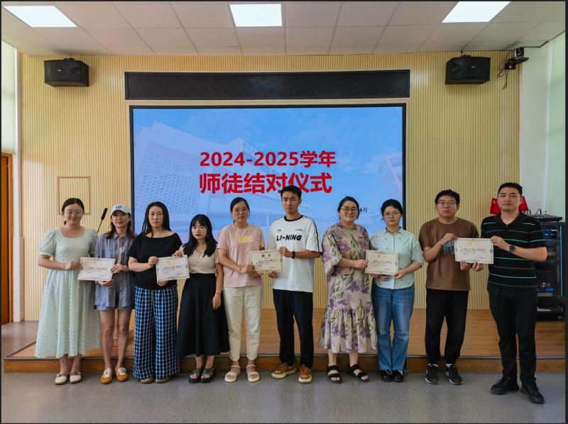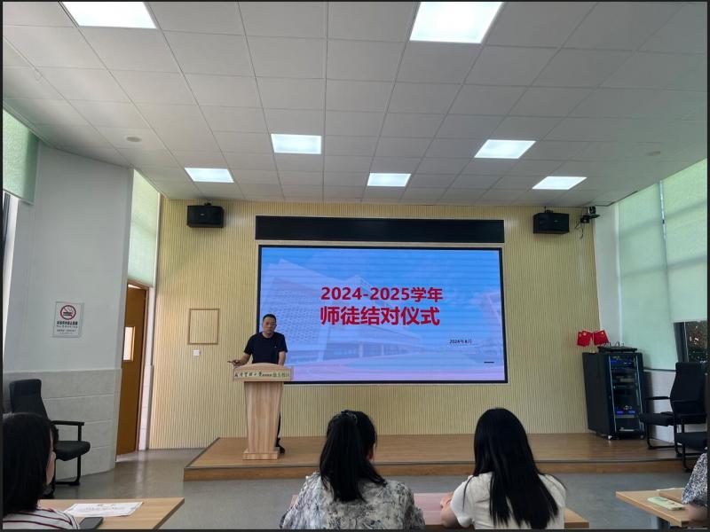 首先,教科室林杰主任宣布2024-2025学年,学科教学师徒名单和班级管理师徒结对名单。江惠华主任和韩亚萍主任为各位师傅颁发聘书并合影留念。