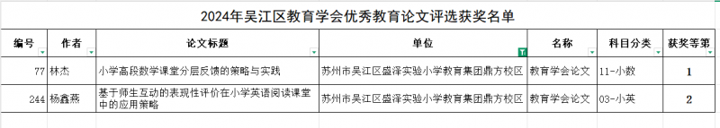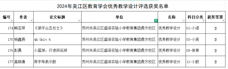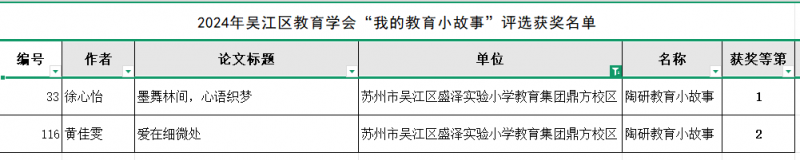 喜讯(吴江区教育学会论文、教学设计、教育小故事获奖)