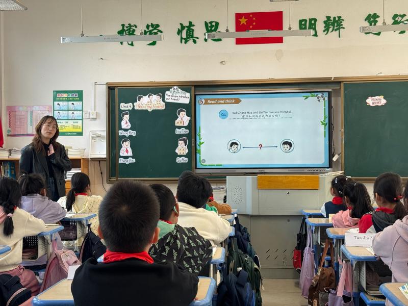 在为期一周的活动中,多位新入职教师及交流教师陆续登台授课,呈现了一节节生动而富有特色的课堂。徐心怡老师在二(1)班执教语文课《纸船和风筝》;同一天,彭晨老师在体育馆开展体育课《田径:立定跳远》,通过规范的动作示范和有趣的练习设计,激发学生参与体育锻炼的兴趣;孙尧芳老师在五(2)班讲授《猎人海力布》,以深厚的文本解读能力,带领学生走进民间故事的精彩世界。胡英老师执教数学课《加法和减法(1)》,注重启发学生思维,通过生活化情境帮助学生理解抽象的数学概念。朱娟老师在三(4)班开展英语课《Unit4 This is my friend》,运用多种互动方式营造轻松愉悦的学习氛围,增强学生的口语表达能力,之后黄晨希老师在三(3)班进行了同一单元的英语教学,展现了不同的教学风格和课堂组织方式。